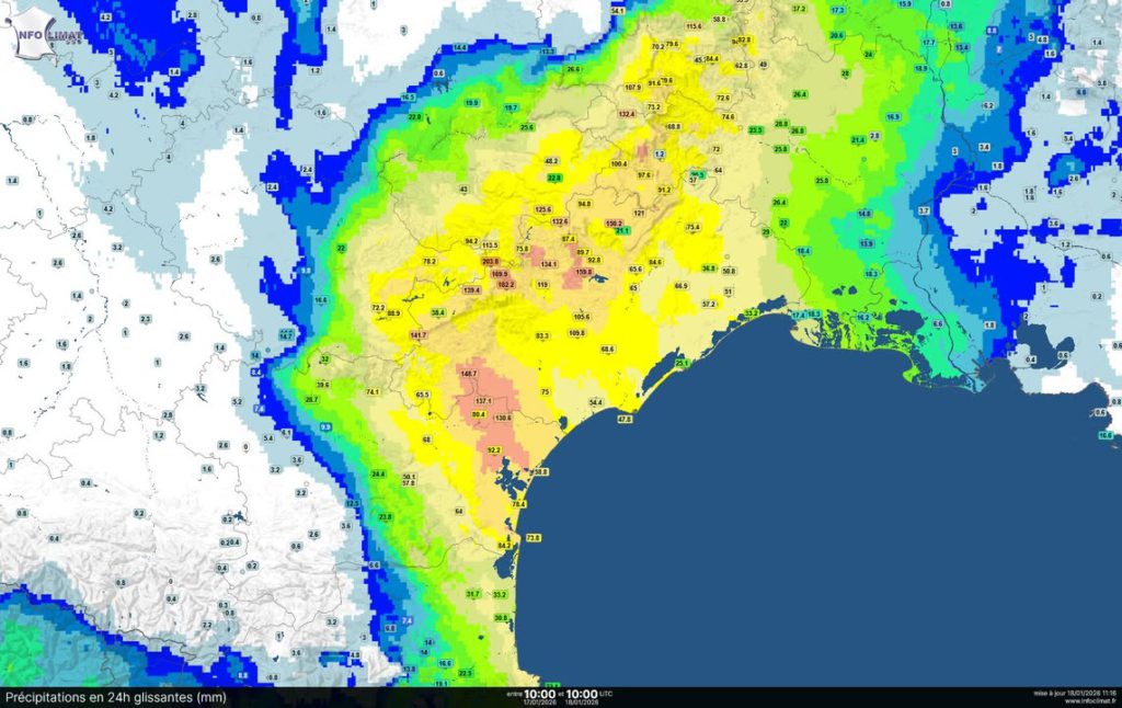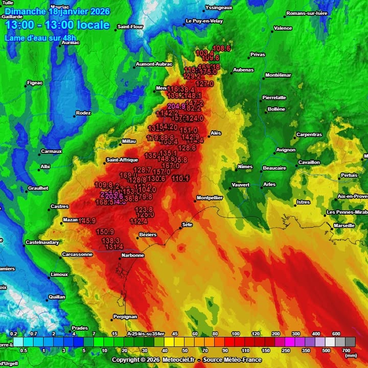 le 17 janvier 2026 à 17h00 La #Corse ainsi que l’#Hérault sont placés en #VigilanceOrange 🟠 pour un épisode pluvieux marqué ce week-end. l’Hérault et l’#Aude sont en Vigilance orange pour la crue importante sur l’Orb amont (34) et Cesse (11,34). ⚠️Photos de la publication de Meteociel