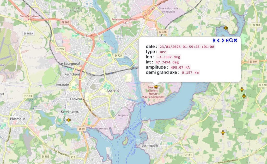 Météo Republié via Innoreader Lire la Suite Puissant Impact positif ⚡️ mesuré à 498kA la nuit dernière à Lorient ! Pas surprenant que ça ait
