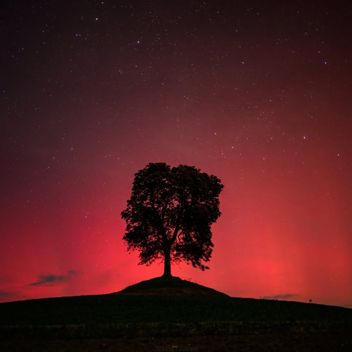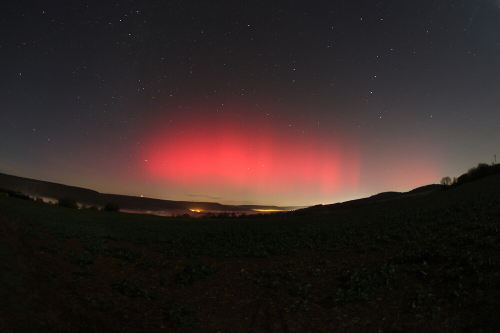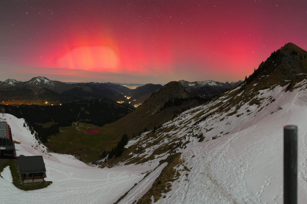 on 12 novembre 2025 at 10h12 Les aurores boréales cette nuit en France. Ici en Auvergne. Quelle éruption solaire ! Merci beaucoup à @alexislnt pour la photo.