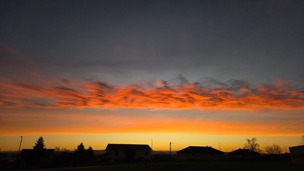 le 18 décembre 2025 à 8h08 Magnifique fin de crépuscule dans une grande douceur ce matin : 9° vs 0.8° de normale 😵💫