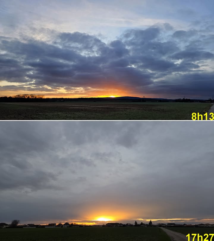 le 31 janvier 2026 à 20h02 Même si l’on a eu “que” 3h20 d’ensoleillement aujourd’hui dans une relative douceur et malgré 7 jours sans le moindre rayon, le soleil a été généreux pour ce mois de Janvier 2026 comparé aux 12 précédents🌤️☀️☀️Photos de la publication de Météo-Viriat
