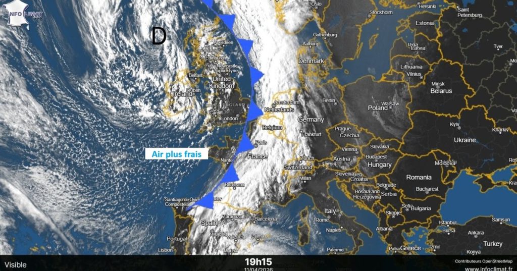 le 11 avril 2026 à 18h55 🔎Une dépression située au large du Royaume-Uni pilote un front froid qui traverse actuellement notre pays. Il est responsable d’une nette baisse des températures par l’Ouest. Le contraste était d’ailleurs marqué cette après-midi avec 28,9°C à Saint-Roman (Drôme) et seulement 9,8°C à Lanfains (Côtes-d’Armor) 🌡La baisse sera néanmoins temporaire avec un temps plus sec et des températures en hausse dès la semaine prochainePhotos de la publication de Infoclimat