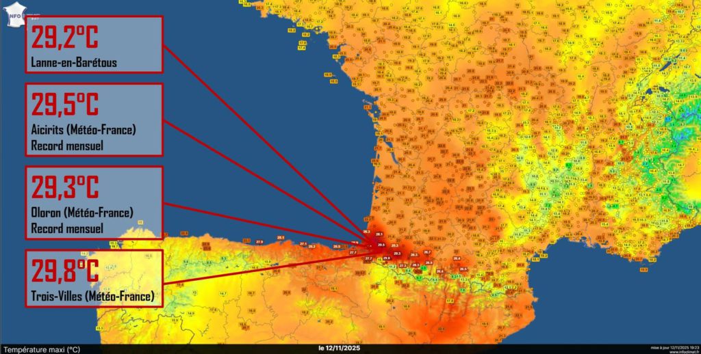 on 12 novembre 2025 at 22h32 Courant de sud tout droit venu du Sahara : près de 30°C dans le Pays Basque !
