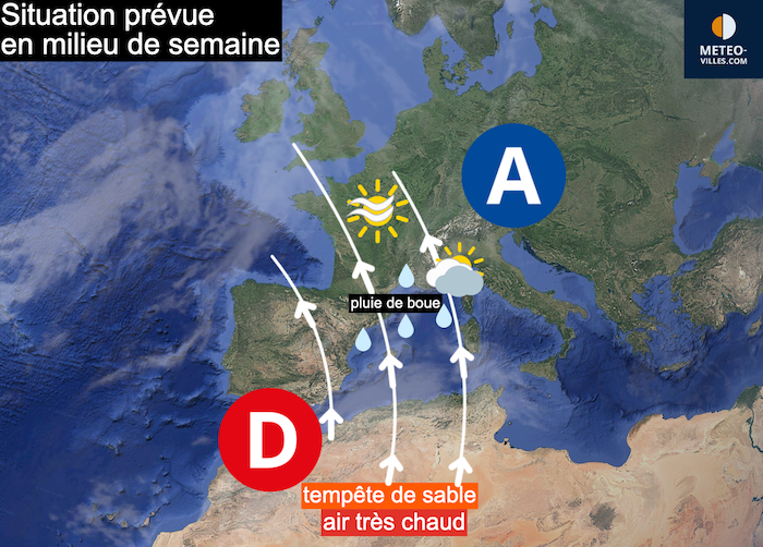 Schéma d’explication des remontées massives de sable du Sahara pour cette semaine – meteo-villes.com