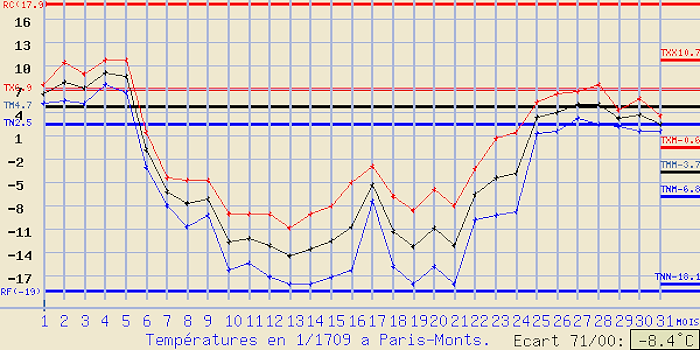 Relevés de température de Louis Morin à Paris en janvier 1709