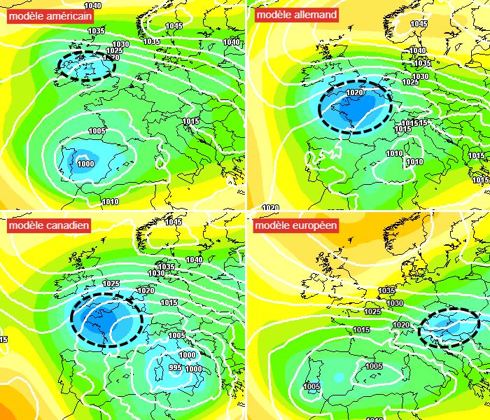 Position de la goutte froide selon les différents modèles au soir du mercredi 17 décembre 2025 – meteociel.fr