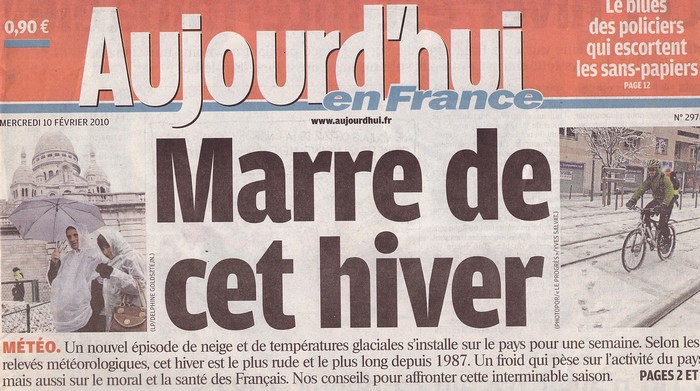 Les chutes de neige successives et le froid deviennent pesants pour bon nombre de français – Une du 10 février 2010