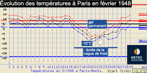 Évolution des températures à Paris au cours du mois de février 1948 – source : site meteo-climat