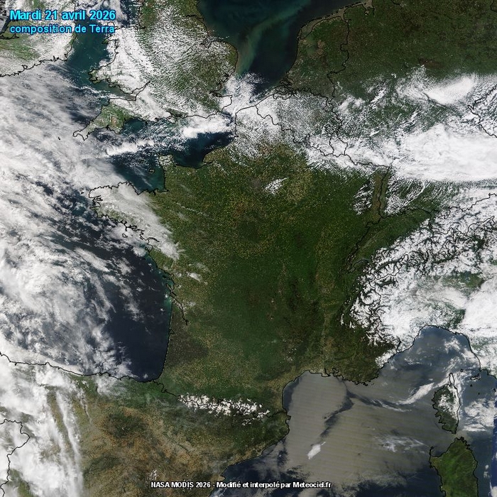 La quasi totalité de la France sous le soleil ce 21 avril 2026 – NASA MODIS