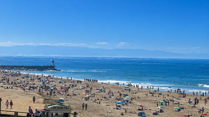 Plage bondée à Hossegor (Landes) sous une chaleur typiquement estivale le 13 avril 2024 – Webcam Viewsurf