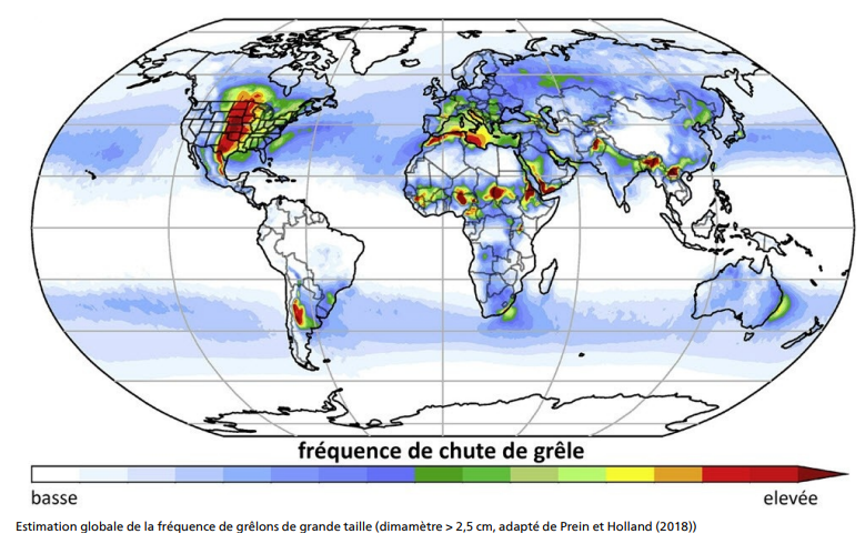Fréquence des chutes de grêle dans le monde – via Météo Suisse