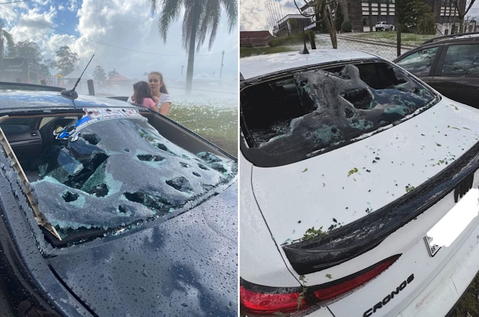 La ville d’Erechim, peuplée d’un peu moins de 100.000 habitants, a essuyé les plus violentes chutes de grêle. Les dégâts sont majeurs. Les grêlons ont notamment pulvérisé les pare-brise des véhicules avec des milliers de véhicules ayant besoin d’être réparés. Non seulement les vitres ont explosé mais la carrosserie a aussi été fortement endommagé, comme le montrent les clichés ci-dessous.