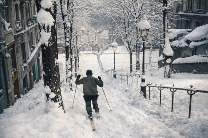 Skieur descendant la butte Montmartre à Paris début mars 1946 – Chronique Météo Villes