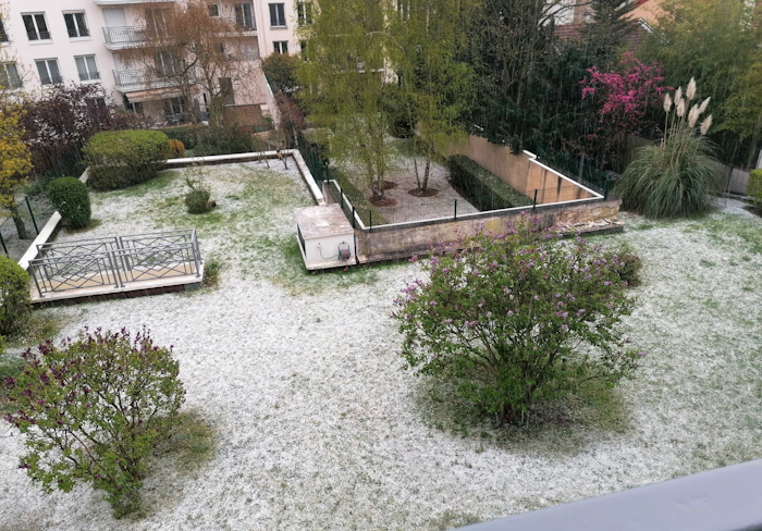 Giboulée blanchissant les sols à Nogent-sur-Marne (94) ce jeudi 26 mars 2026 – Lydia Dupuis Leroy