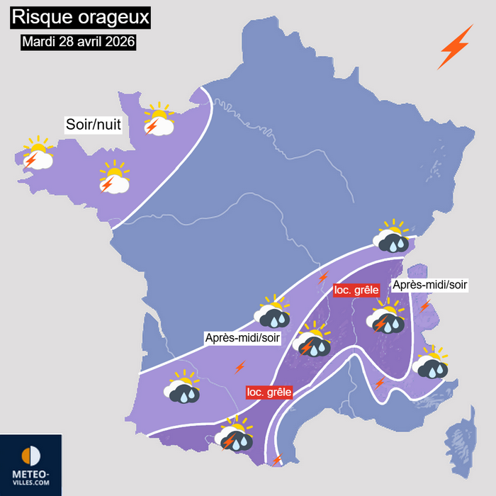 Risque orageux sur la France pour la journée du 28 avril 2026 – Météo-Villes