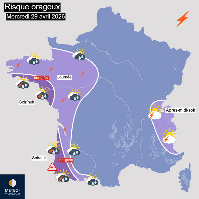 Risque orageux sur la France pour la journée du 29 avril 2026 – Météo-Villes