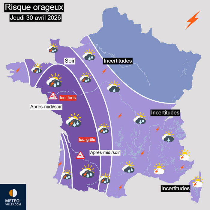 Risque orageux sur la France pour la journée du 30 avril 2026 – Météo-Villes
