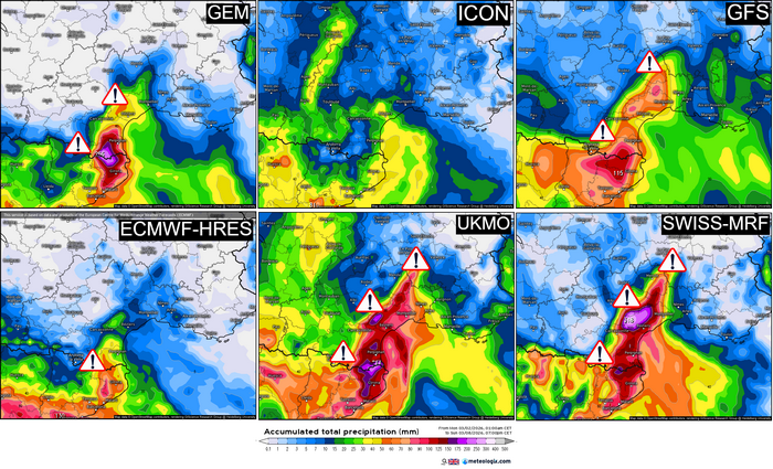 Si celle-ci reste trop au sud comme l’envisage le modèle européen ECMWF, alors le risque fortes précipitations pourrait rester marginal côté français, les intempéries concernant plutôt l’Espagne.