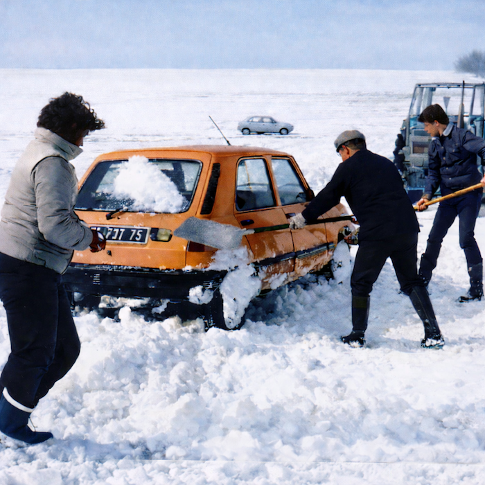 Mi-février 1986 : Les agriculteurs viennent au secours des automobilistes piégés par la neige dans la Beauce – photo meteo-paris.com