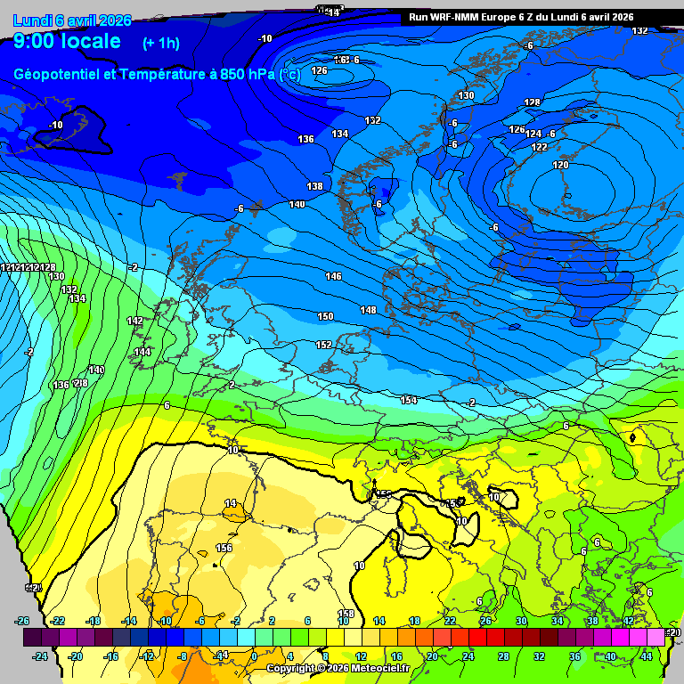 Évolution de la masse d’air en Europe, prévue jusqu’à samedi prochain selon le modèle météo WRF – Meteociel