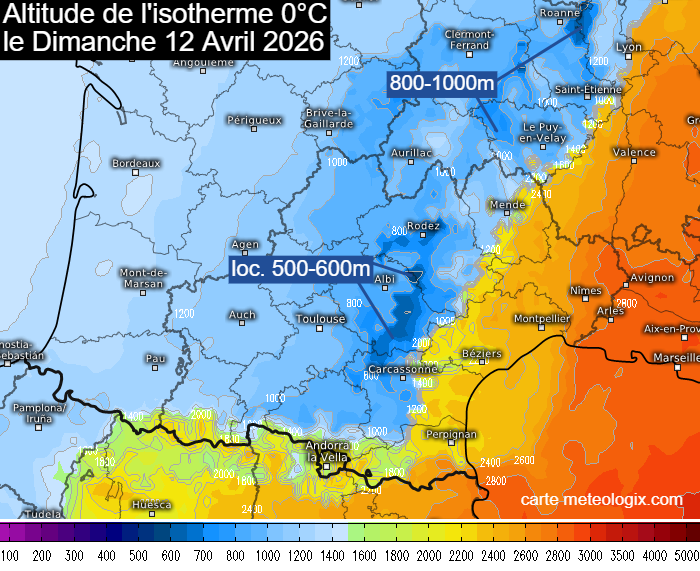 Altitude de l’isotherme 0°C pour le dimanche 12 avril 2026 – meteologix.com
