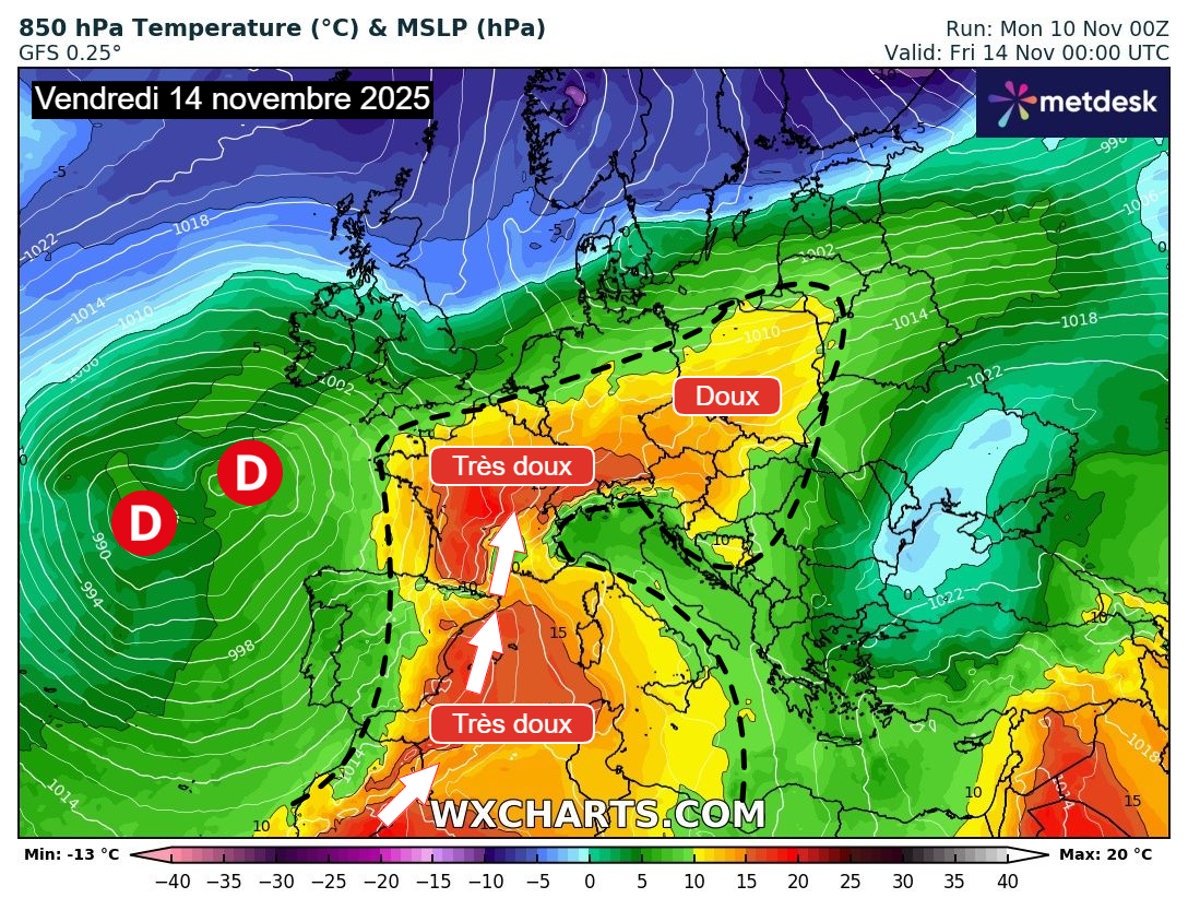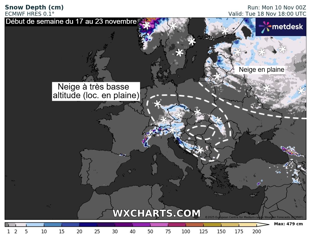 Alors que la France et une partie de l’ouest de l’Europe s’apprête à connaître une semaine du 10 au 16 novembre 2025 exceptionnellement douce, les premiers signes de l’arrivée de l’hiver se font paradoxalement voir sur le continent européen.