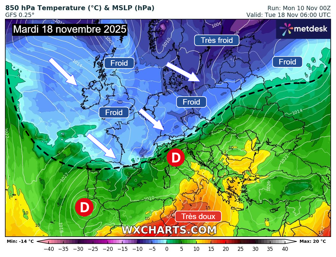 Pour le moment, la situation est encore assez indécise sur ce point. En effet, si une baisse des températures notable sera observée dès ce week-end, il est pour le moment difficile de définir l’ampleur de la fraîcheur ou du froid sur notre pays.