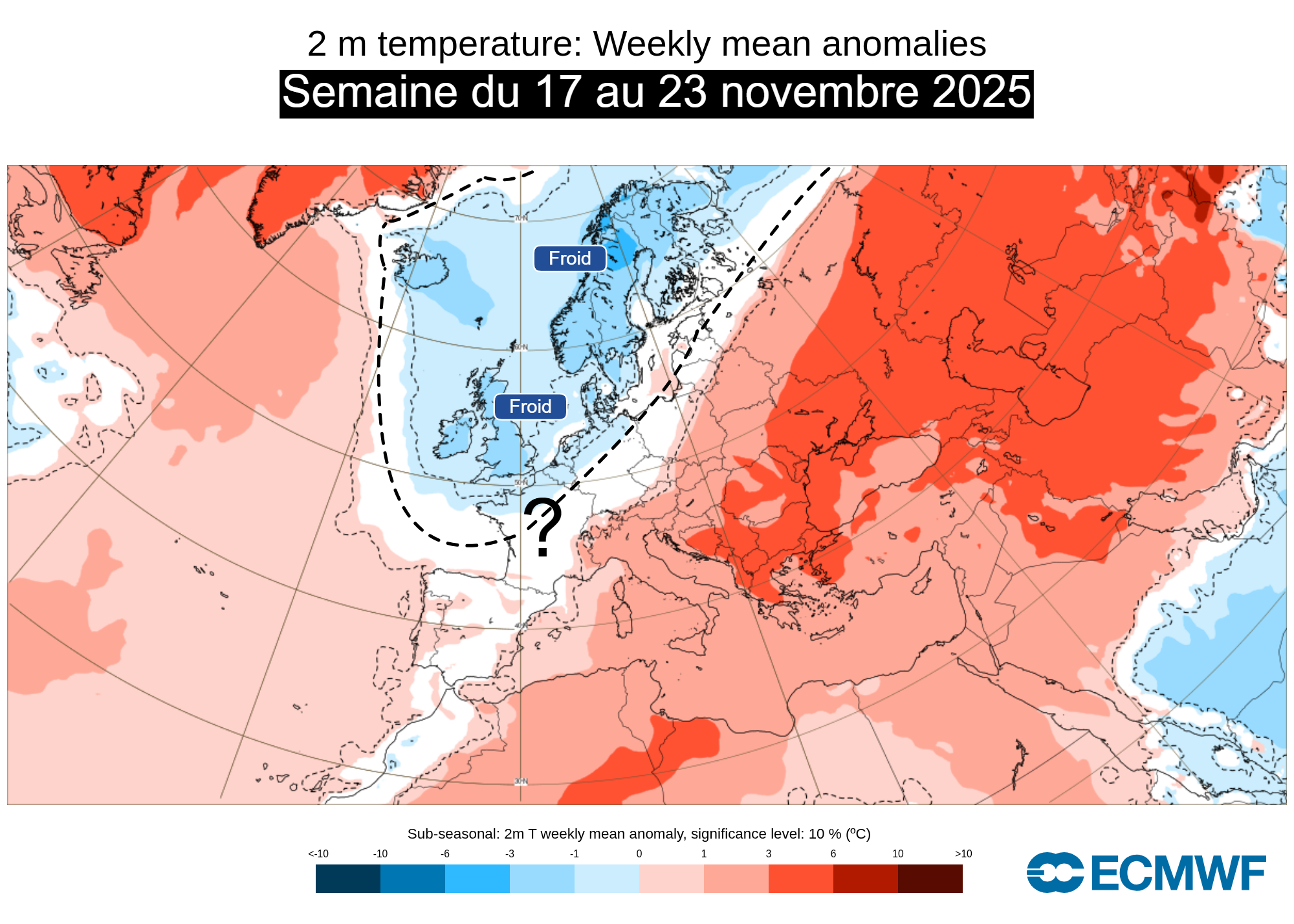 Anomalies de températures en Europe pour la semaine du 17 au 23 novembre 2025 – ECMWF