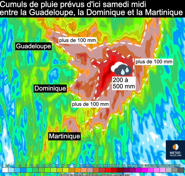 Cumuls de précipitations attendus sur les Antilles jusqu’au 11 octobre 2025 – via meteociel.fr