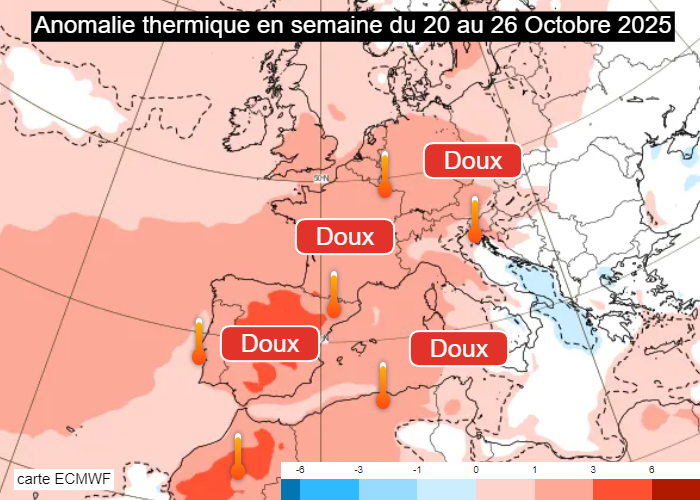 Anomalie thermique prévue en semaine du lundi 20 au dimanche 26 octobre 2025 – ECMWF