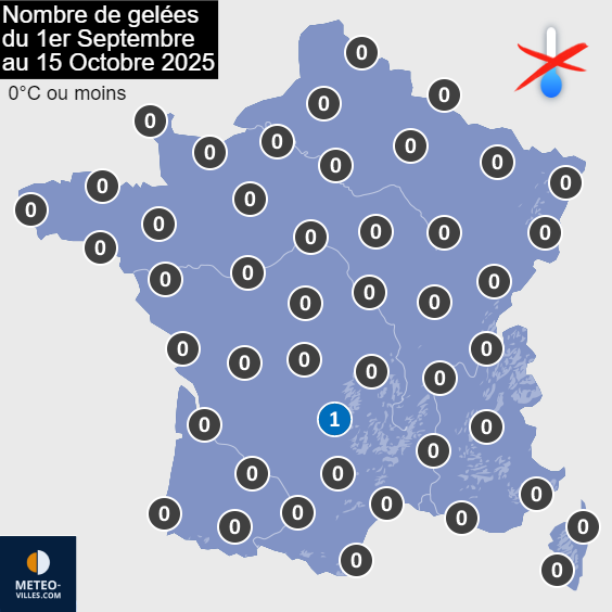 Nombre de gelées observées du 1er septembre au 15 octobre 2025 – Météo Villes