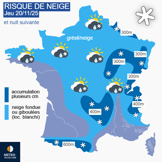 Risque de neige et/ou giboulées ce jeudi 20 novembre 2025 et la nuit suivante – Météo Villes