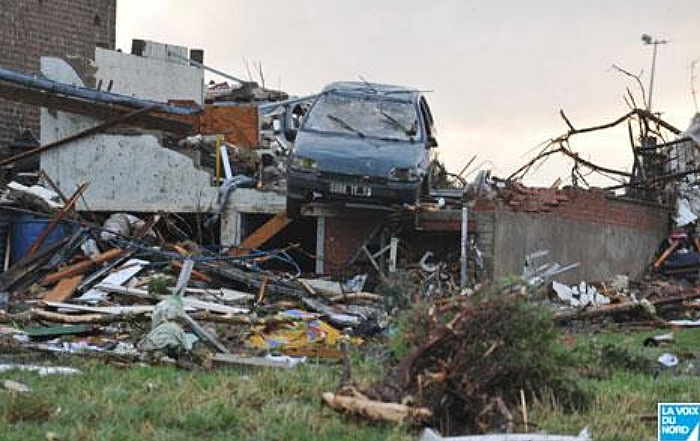 Il ne s’agissait pas d’une tornade banale, bien au contraire ! La tornade d’Hautmont avait parcouru plus de 18 kilomètres et avait atteint l’intensité remarquable EF4 (sur une échelle allant de EF0 à EF5) ! Cela signifie des vents ayant probablement atteint les 300 km/h au pic d’intensité de la tornade, qui avait frappé la commune d’Hautmont. De nombreuses habitations avaient littéralement été éventrées. Au regard des images, le bilan de 3 victimes apparaît presque léger.