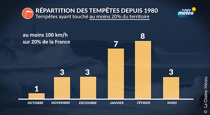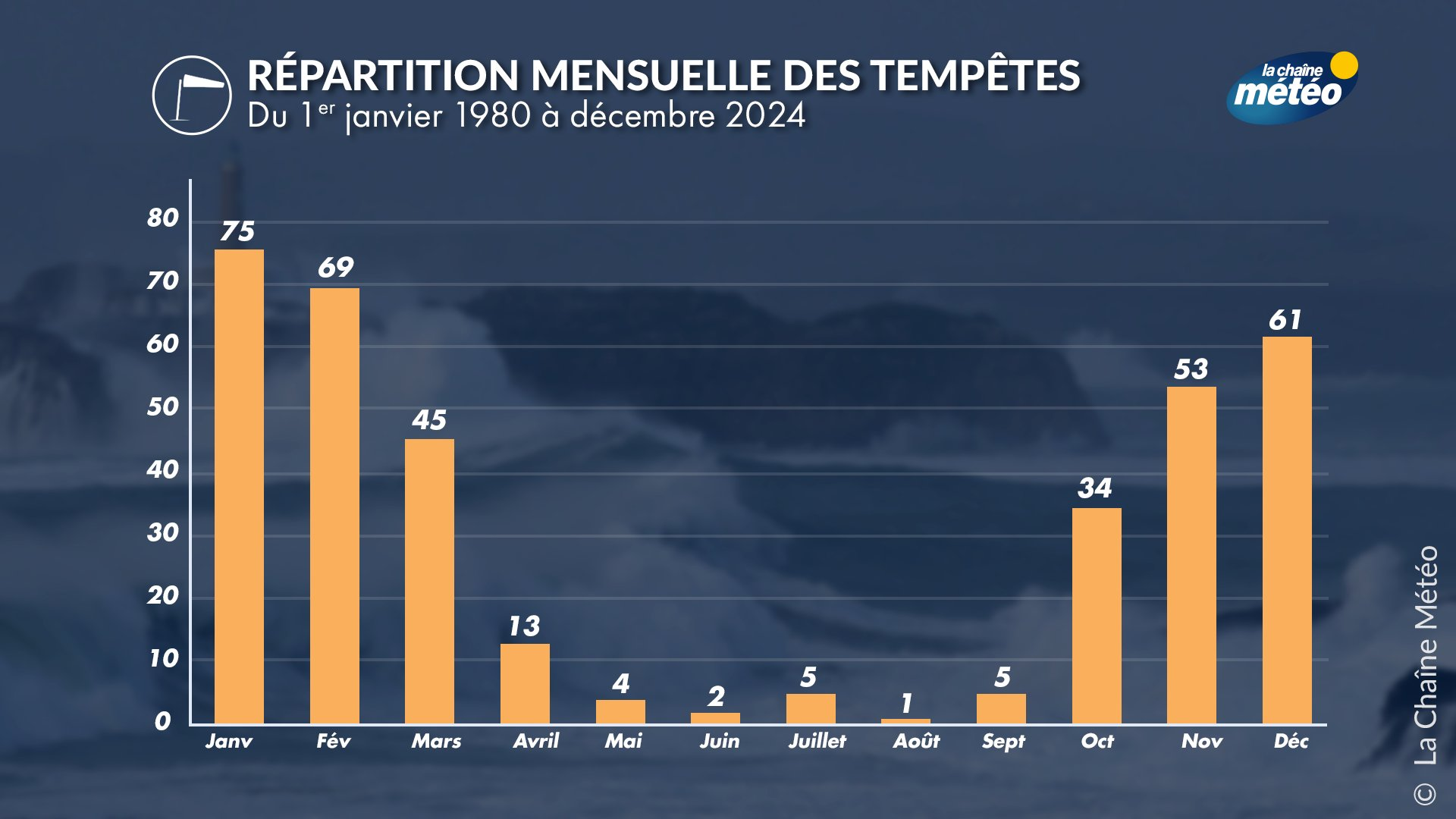 Répartition mensuelle des tempêtes ayant touché la France de 1980 à 2024 – La Chaîne Météo
