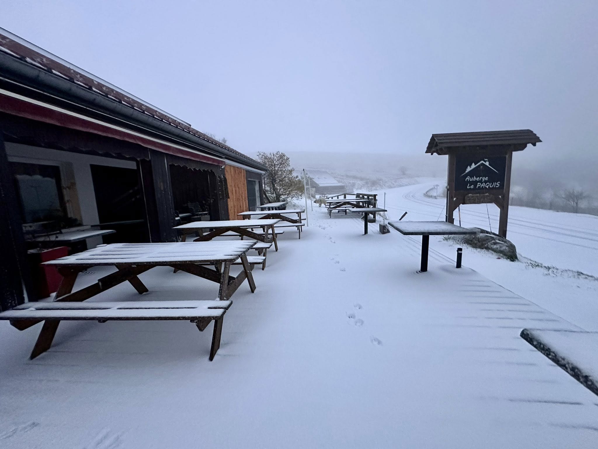Neige à La Bresse dans les Vosges à 1250m ce matin du vendredi 24 octobre 2025 – photo Auberge Le Paquis