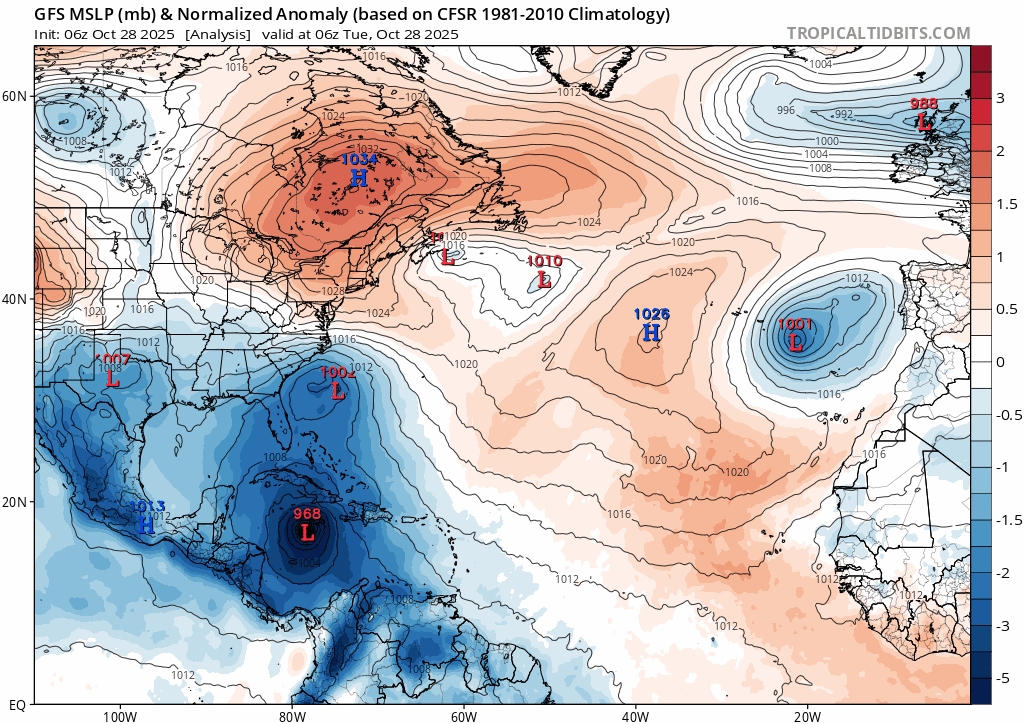 Évolution des pressions sur l’Atlantique du 28 octobre au 3 novembre 2025 – via TropicalTidBits