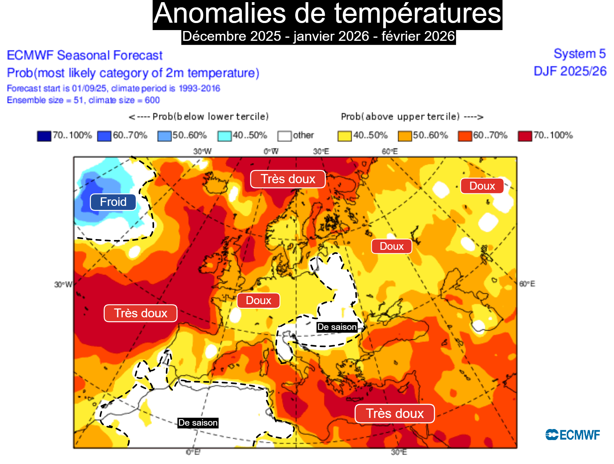 Ainsi, attention aux tendances glaciales évoquées par ces nombreux articles pour l’hiver prochain. Celles-ci sont mises en avant dans une recherche de clic et ne se basent sur aucune source fiable, voire même sur aucune source tout simplement. Rien n’indique pour le moment que cet hiver 2025/2026 sera froid en France, ce qui est d’ailleurs logique dans la dynamique du réchauffement climatique global.
