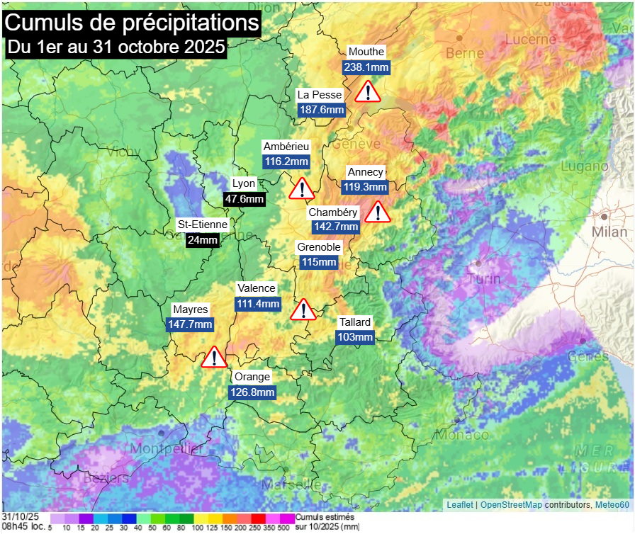 Cumuls de précipitations depuis le 1er octobre 2025 sur la France – meteo60.fr