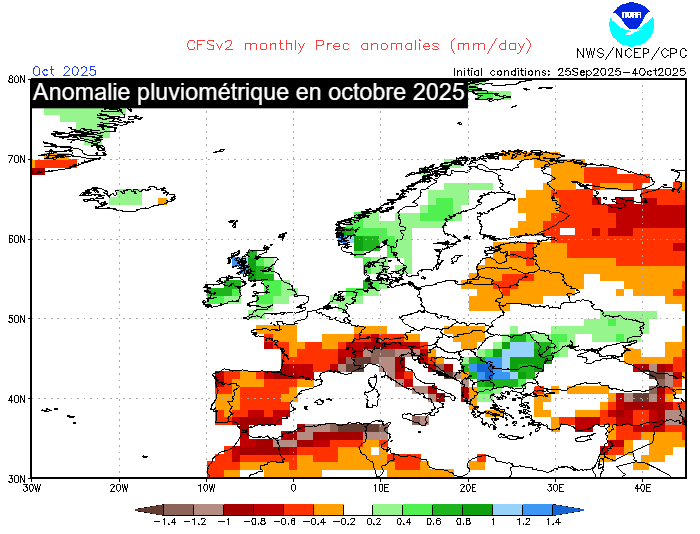 Anomalie pluviométrique envisagée en octobre 2025 – NOAA