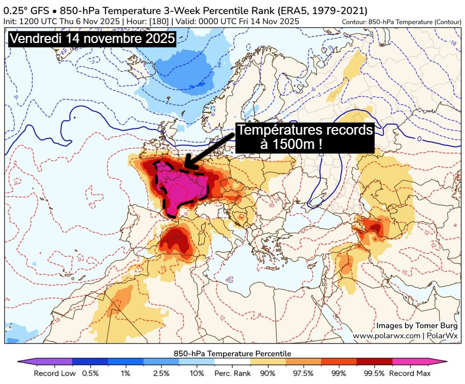 Vers une masse d’air record à 1500m sur la France la semaine prochaine – PolarWX.com