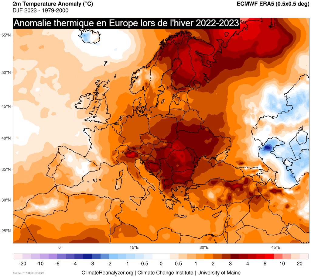 Anomalie thermique durant l’hiver 2022-2023 en Europe – climatereanalyzer.org