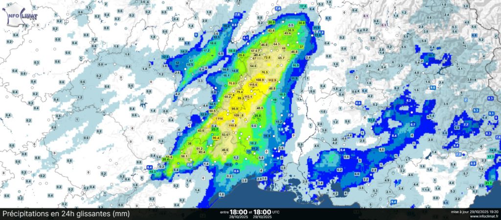 Météo Republié via Innoreader Read More 🌧 Comme prévu, une ligne-pluvio orageuse s’est formée sur les Cévennes et ses abords. Les cumuls dépassent par endroit