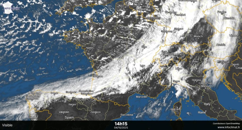 on 4 octobre 2025 at 13h07 🌧 Le front froid continue sa progression vers le Sud et l’Est. Il apporte des intensités de pluie très temporairement fortes. Le front est très bien délimité sur l’image satellite, avec un régime d’averses à l’arrière (très localement orageuses) et fortes rafales de vent. A noter que la progression du front est visible en regardant la carte des températures. Son passage apporte une baisse rapide des celles-ciPhotos de la publication de Infoclimat Lire la suite de cet article
